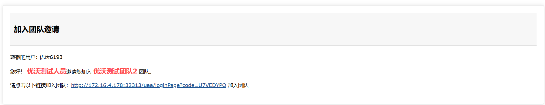 (3)通过收到邮箱邀请链接被邀请加入团队 若优沃系统个人中心中未绑定邮箱 当通过邮箱受邀时,点击邮箱信息中的链接