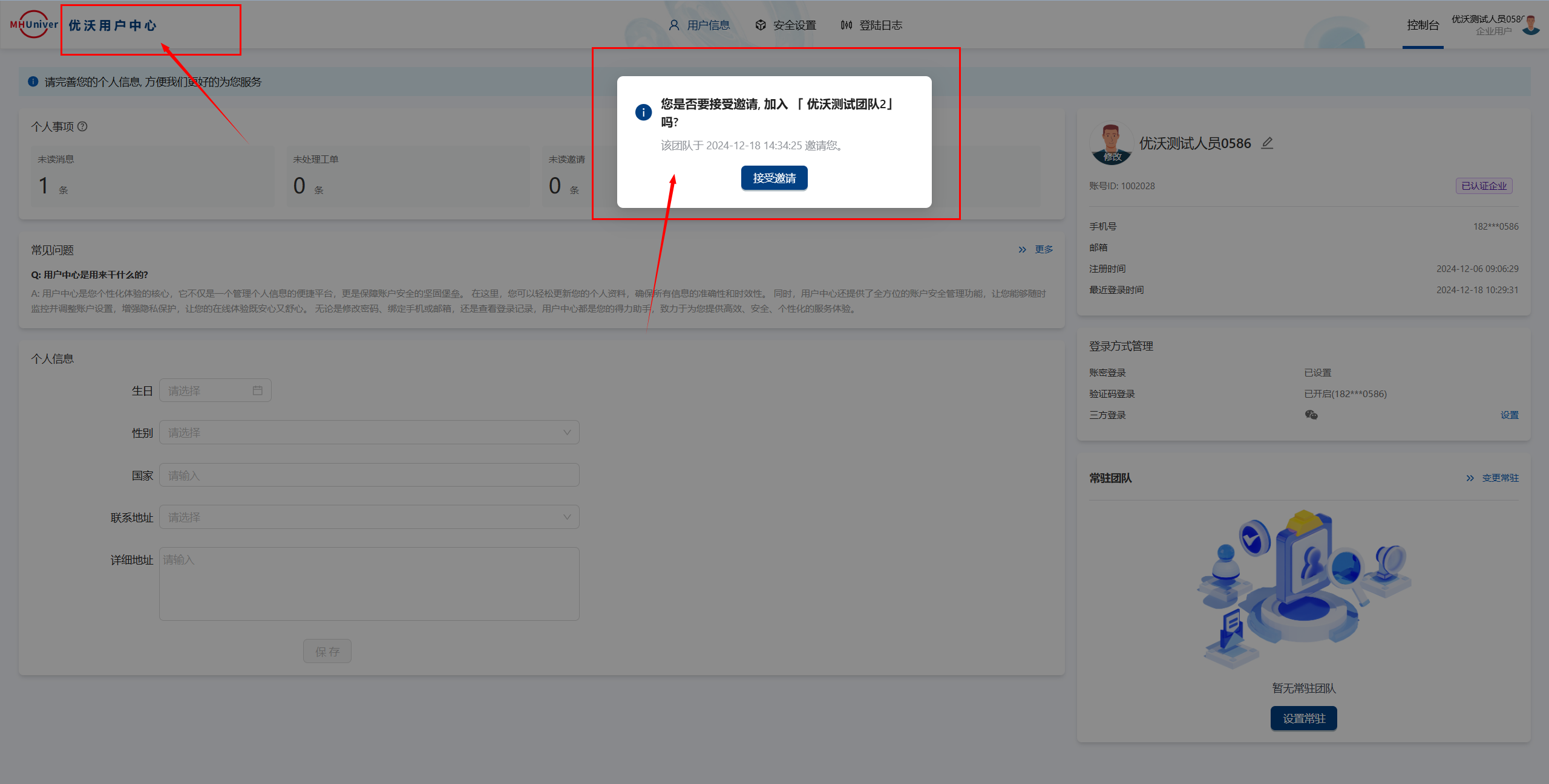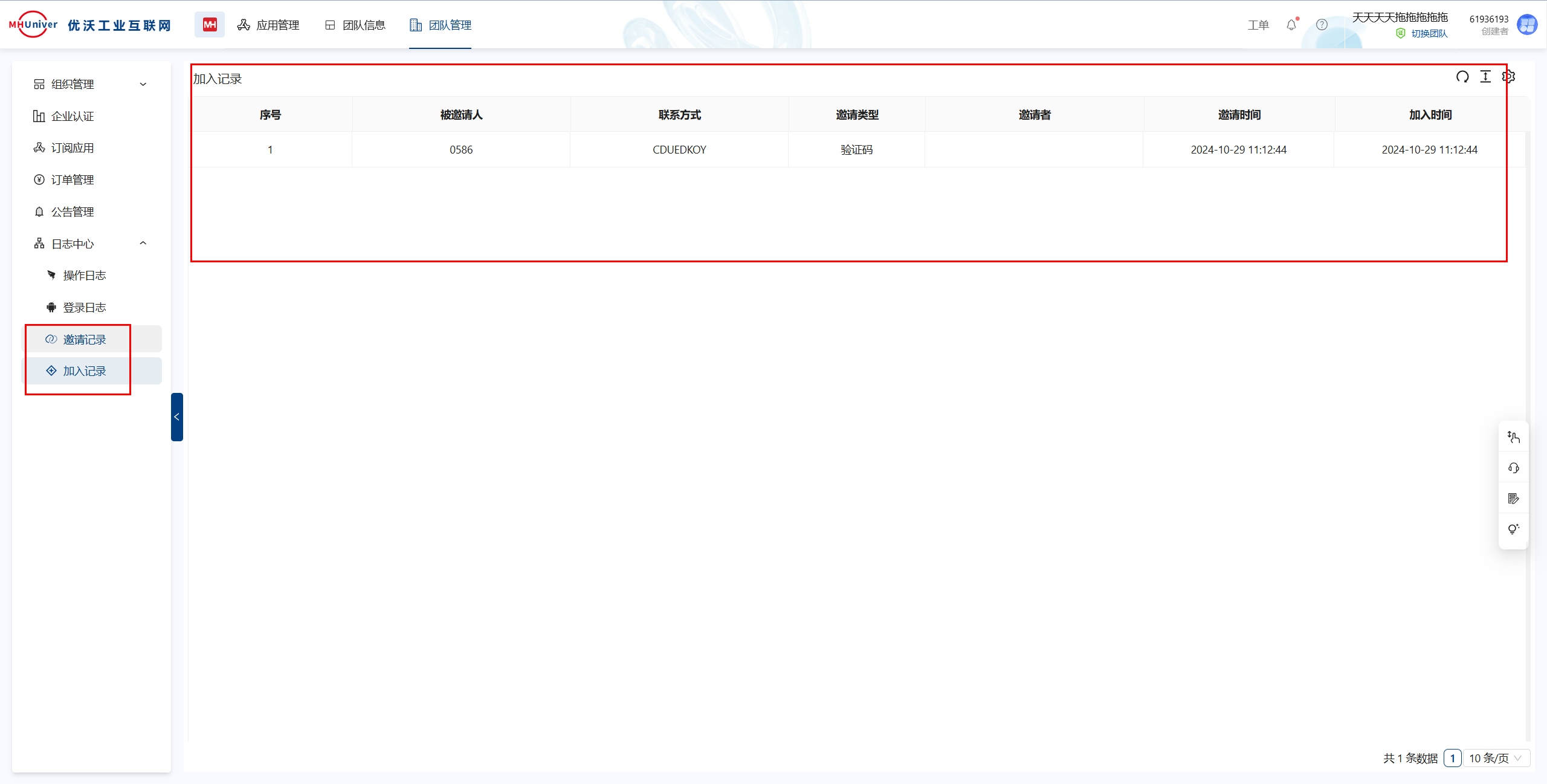 邀请记录与加入记录可在团队管理的日志中心查看